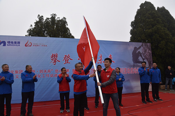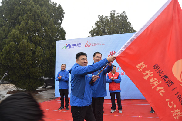 王廷波宣读《庆祝明化建企60周年系列活动实施意见》和《明化集团组建义工组织的实施意见》;明化集团义工代表任冰涛、任延东、杨兴时表态发言;陈锋为明化义工工作站授旗,李永杰致辞鼓励明化爱心奉献,盛赞明化义工服务民众的仁心善举。集团董事长孙洪海为系列活动筹备组授60周年庆典旗帜并致辞。