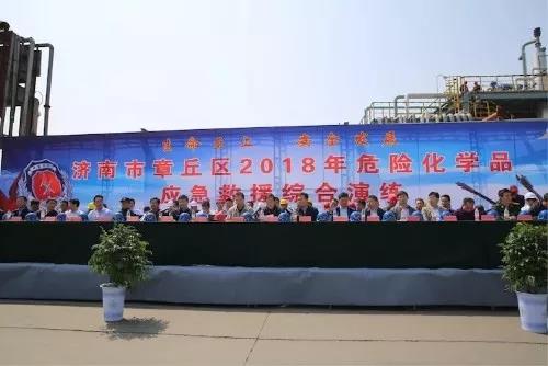 4月27日上午,济南市章丘区2018年危化品应急救援综合演练在明化集团举行。