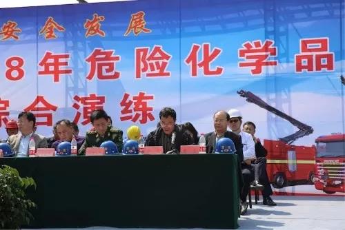 演练由章丘区人民政府主办、章丘区安全生产委员会承办、山东晋煤明水化工集团有限公司协办。济南市安监局副巡视员赵福森、应急救援指挥中心副主任夏信强,章丘区副区长杨忠及区应急办、安监局、公安分局、经信局、安监局、消防大队、交运局、环保局、卫生局、气象局、环卫中心、刁镇政府,明化集团董事长孙洪海及园区企业主要负责人等160余人现场观摩。高福胜做动员讲话,杨忠宣布演练开始。安监大队长刘宗桥现场指挥。