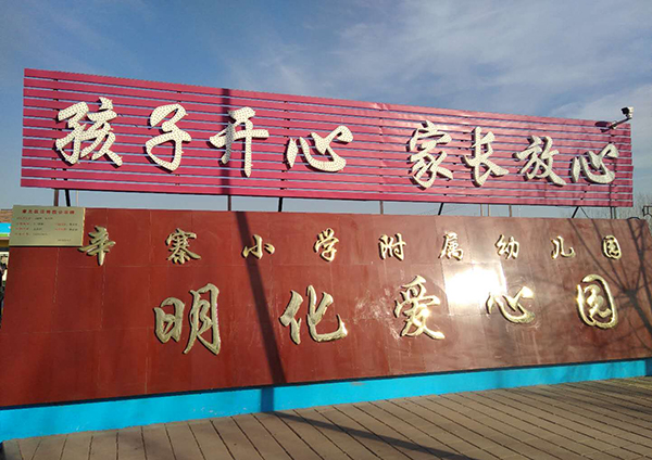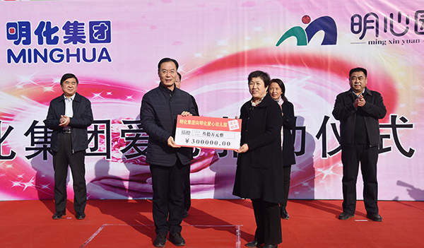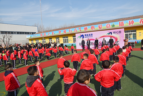 活动仪式上,明化爱心幼儿园长王宝玉代表全体师生致感谢词。仇健代表明化集团发表讲话。孙洪海现场为明化爱心幼儿园捐款。刘建民局长和李长永书记共同为明化爱心幼儿园揭牌。