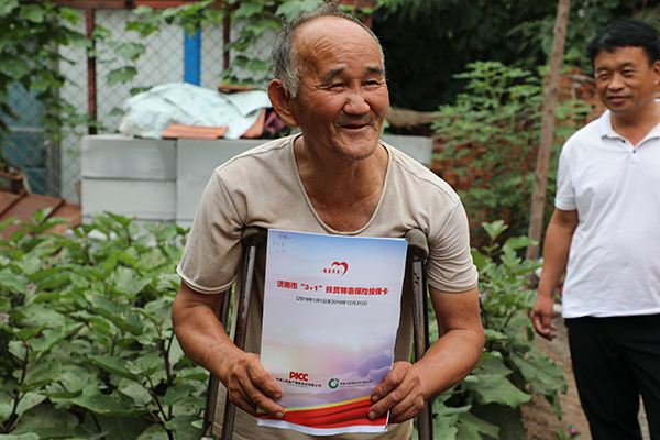 仇健一行先后走访了赵长勤等十几户困难家庭,为他们送去了《济南市“3+1”扶贫特惠保险投保卡》及慰问品,鼓励他们要坚定信心和决心,积极面对困难,生活一定会越来越好。