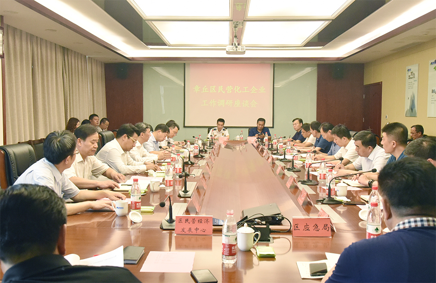 7月27日,济南市副市长孙斌带领市工信局、市应急管理局、市民营经济发展局主要负责人调研民营化工企业工作时来集团调研并座谈。章丘区副区长王士强及区相关职能部门陪同调研。刁镇化工产业园、莱芜口镇化工助剂产业园、商河化工产业园主管部门负责人以及刁镇化工园区华氟、圣泉、明化三家企业负责人参加座谈。