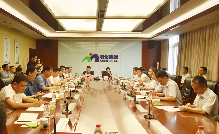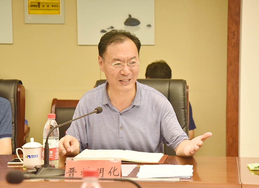 孙洪海向调研组汇报了集团的运营情况。他讲到,明化积极响应省、市、区关于加快新旧动能转换号召,上马洁净煤气化技术,不断实施技术改造,装置整体的运营情况较为理想。在洁净煤气化项目平稳运行两年的时间里,明化不断对现有生产装置进行优化。四年前,明化试水精细化工,经过持续不断地更新优化,安全环保形势稳定,产能和效益实现了较大提升,形成了园区配套、产量、化工生产经验等优势。下一步,明化将在园区内充分发挥自身优势,以各功能岛实现园区公共设施的配套发展,进一步促进园区内各企业产业链的形成,充分发挥园区龙头的作用,并依托功能岛,为高端化学品开发创造配套产业链优势,实现传统企业向高端企业的转型。