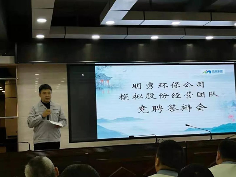 10月31日,明秀环保公司模拟股份精英团队竞聘答辩会在3#办公楼四楼会议室进行。董事长孙洪海等集团领导、副处级以上管理人员及团队成员参加会议并担任评委。集团副总经理孙志田主持会议。巩乃刚、崔兴龙、满飞三位带头人参加竞聘答辩。