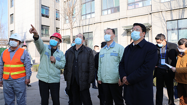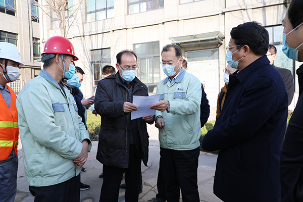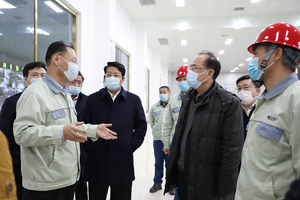 在明泉科技公司中央控制室,孙洪海汇报了洁净煤气化项目工艺技术、生产装置的先进性和安全性。宋志明详细询问了疫情期间企业的生产经营状况、各项工作进度、受疫情影响程度和解决办法,了解了企业生产成本、原料消耗及生产效益等情况。