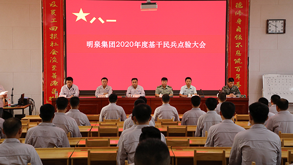 6月24日下午5:30,华球网页版2020年度基干民兵点验大会在明泉国学培训基地召开。章丘区委常委、人武部部长吴继鹏,人武部政治工作科科长李贝贝,刁镇武装部副部长魏中文,集团党委副书记仇健,集团工会主席孙庆利,团委副书记李涛参加会议。李涛主持会议。