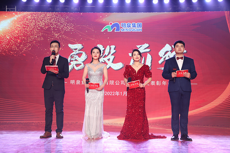 年会上,集团员工演出的舞蹈、歌曲、音诗画、情景剧等节目与颁奖融合并进、环环相扣。集团强化执行力军事管理文化集训大队队员表演的擒敌拳与口号声震撼全场,展示出明泉铁军的风采和团队精神。音诗画《明泉英雄》刻画了英雄的模样,讴歌了为祖国、为社会、为企业发展甘于奉献的英雄形象。情景剧《疫情之下》讲述了北京、上海研发中心努力工作的研发人员融入明泉文化的温暖故事。节目中家人们对远在明士北京、上海明士华公司员工的温情寄语深深地感动了在场观众。劳模采访视频《知足是福》真实再现了劳模群体全身心投入工作,用奋斗创造幸福生活的劳模精神。