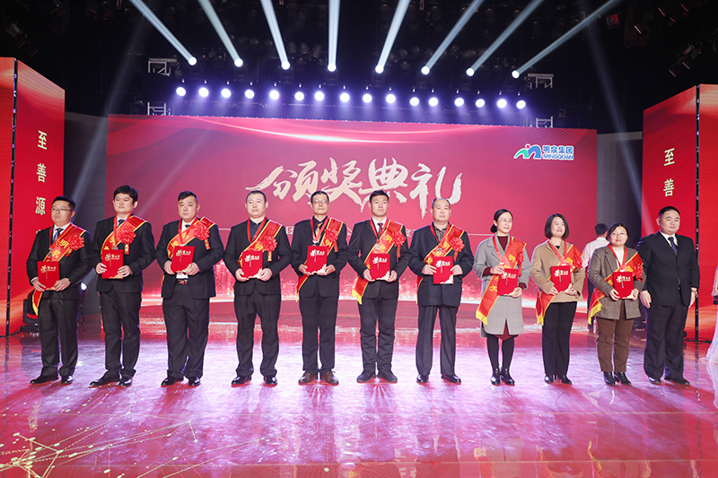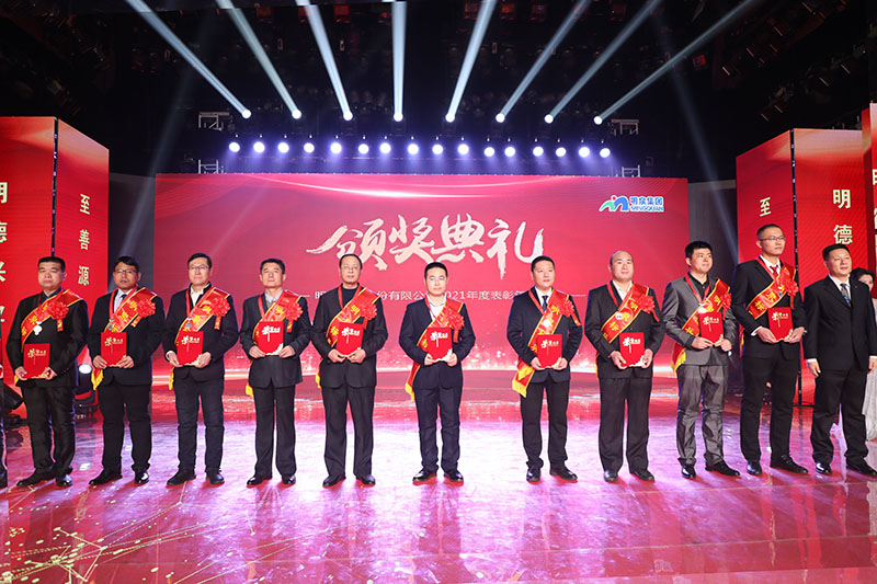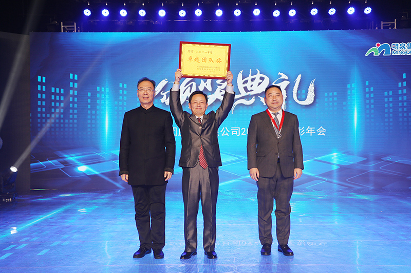 与会人员共同观看了集团2021年度工作回顾视频《勇毅前行筑基础 发力高端向未来》。集团总裁孙志田宣读了《华球网页版关于表彰2021年度优秀集体、优秀个人的决定》,隆重表彰了2021年度涌现出的35个优秀集体和491名优秀个人。吕民松、孙洪海、孙志田,集团董事张圣成、刘文举、任冰涛、李光,集团监事韩加强、蔡力、刘洋,分别为集团2021年度先进集体、先进个人以及明士新材料公司获奖者颁奖。