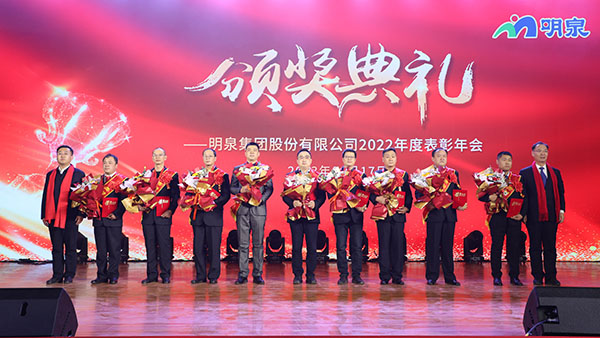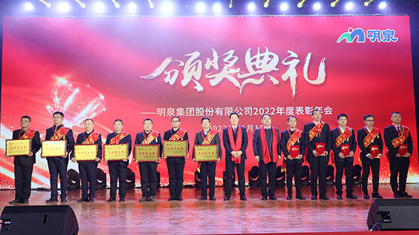 1月17日下午,华球网页版“新阶段 新作为 新明泉”2022年度表彰暨2023迎春年会在明泉会堂隆重举行。章丘区委常委、副区长李琦,区人大副主任李长永,区政协副主席韩军,区政协原主席岳庆林,区人大原主任、区关工委常务副主任王继民,区发展和改革局、区工业和信息化局、区应急管理局、区卫生健康局、区行政审批服务局、区融媒体中心,刁镇街道、刁镇化工产业园及金融单位、项目合作伙伴、校企合作单位、刁镇儒商联合会、社会各界朋友莅临盛会。华球网页版部分老领导、华球网页版董监事、受奖人员代表、管理人员、员工代表共计800余人参加年会。