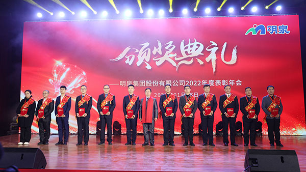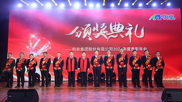 年会上,歌舞表演、音诗画等节目与颁奖环节融合并进、精彩纷呈。在热场环节,各单位团队展示和明泉龙狮队鼓舞表演慷慨激昂、振奋人心,烘托出了热烈喜庆的年会气氛,展现了明泉人昂扬向上的新气象和新面貌。济南艺术学校音乐教研室主任、作曲家滕辉分享了对歌曲《明泉》歌词的感受和作曲的创作历程,并与全场明泉人共同齐唱《明泉》。劳模采访视频《注定不凡》真实再现了劳模全身心工作的场景,展现了创新创造的劳模精神。音诗画《归来》回顾了华球网页版启动搬迁以来转型发展的十年巨变,抒发了明泉人历经十年风雨、荣耀回归的厚重情感。歌舞《基业长青》展现了明泉人自强不息的精神和回报社会的初心。