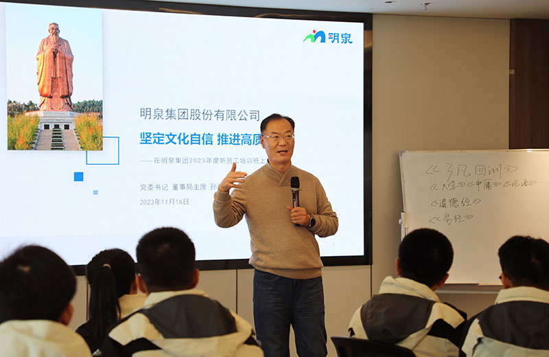 基于对明泉未来的发展考虑,我们应该做到以下四点:一是要坚定文化自信,传承中华优秀传统文化,多读圣贤书籍,汲取古人经验智慧,指导工作实践。二是要遵循事物发展的客观规律,“天道无亲,常与善人”做顺应自然大道的正确事情,以道驭术。三是行动取决于思想,思想来源于文化。文化认知是对变化的世界的基本判断,是看待世界、人生的基本观点,是做任何事情的出发点和落脚点。要不断提高文化认知,正确指导工作实践。四是要推动中华优秀传统文化创造性转化、创新性发展,坚持“以文化人、依法治企”的基本文化理念,让员工得到物质财富的同时获得精神层面的提升和心灵上的慰藉。孙洪海勉励青年员工,一是要扎扎实实塌下身子工作。“格物致知,诚意正心,修身齐家”,年轻人踏入职场要做深、做透,持续积累,每天有所进步,用业绩和成绩证明自身价值。二是要选择正确的航道,选择大于努力,同时敢于尝试,不怕犯错,在错误中吸取教训,正确看待成绩与挫折,持续精进。三是要有“成人为己,成己达人”的思想,谦虚谨慎、不骄不躁,在积极、向上、和谐、友好的工作氛围下快乐成长,在成长中撷取收获。