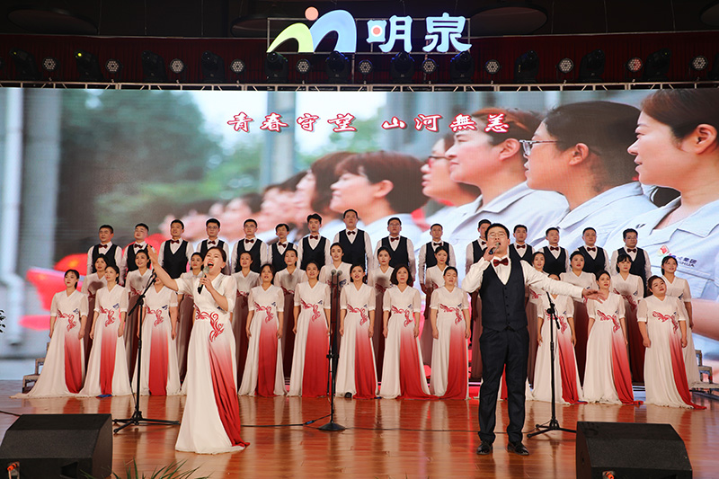 明泉合唱团将《明泉》《明泉之恋》深情演唱,全场800人同唱一首歌,点燃了现场激情,凝聚了明泉强大的气场。