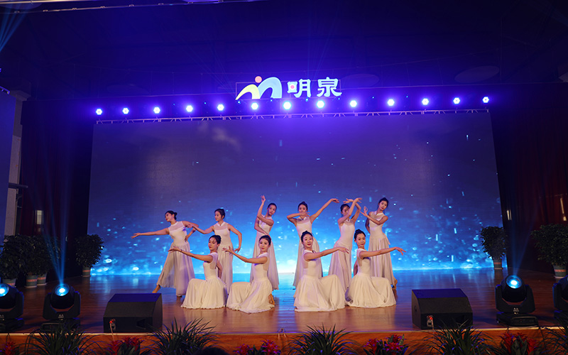 舞蹈《辉煌明泉》大气开场,舞姿优美,旋律悠扬,展现了明泉人饱满向上的精神风貌。