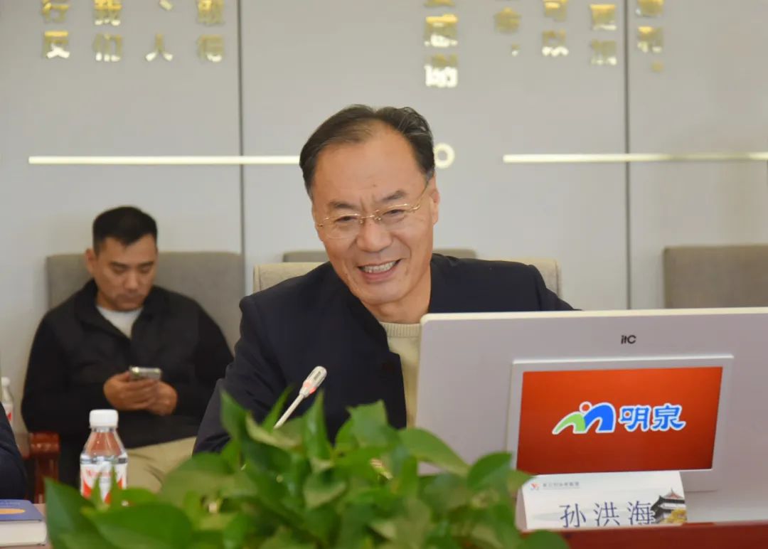 孙洪海做了题为《坚定文化自信推动高质发展》的发言,讲述了明泉退城进园以来的发展情况和下一步的发展规划,并与各位联盟理事进行互动交流。