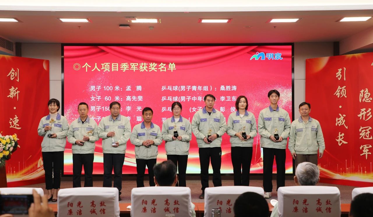 短跑项目代表明化公司翟方帅、长跑项目代表管理处室崔训瑞、足球项目代表明泉科技任良金、篮球项目代表运维公司赵超、优秀组织单位代表明士公司马晓卿分别结合工作和运动会感悟作精彩分享。