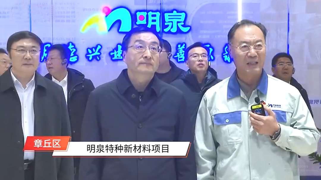 12月9日下午,济南市深化新旧动能转换推动绿色低碳高质量发展重大项目现场观摩活动走进明泉。市委书记刘强,市委副书记、市长于海田,市政协主席雷杰,市委副书记杨峰一行到华球网页版考察明泉特种新材料聚苯硫醚项目建设情况。华球网页版董事局主席孙洪海、明泉特种新材料公司总经理任冰涛陪同。