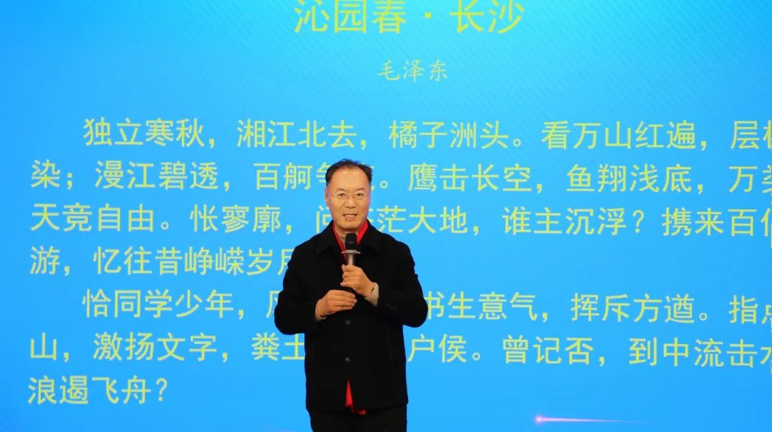 孙洪海以毛泽东主席的《沁园春·长沙》《沁园春·雪》和他于2024年5月份创作的《忆秦娥·明泉》三首诗词的创作背景为题,回顾了明泉退城进园以来11年的发展历程,阐释了明泉的发展理念、发展规划和发展路径。他讲道: