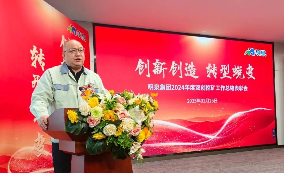 孙洪海代表集团向获奖单位致以热烈祝贺,感谢他们在2024年度“探矿”“挖矿”工作中的卓越贡献,他们是明泉的拓荒牛、表率和英雄。为大家2025年的工作给予了温暖而有力的鼓励。他讲道,在发展的重要变换期,如何看待明泉的当下和我们的未来,认知极为重要。