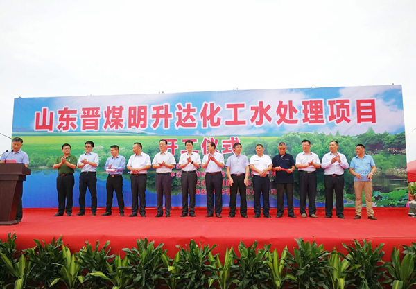 2017年8月29日上午10:15,山东晋煤明升达化工有限公司退城进园“40·60”项目现场举行水处理工程开工仪式,宁阳县委书记刘学保,宁阳县政府常务副县长刘明,中材国际董事、副总裁蒋中文,安徽节源环保有限公司董事长徐席东、总经理徐四海,博天环境集团股份有限公司高级副总裁、博天环境工程(北京)有限公司董事长李璐、总经理杨超,上海泓济环保科技股份有限公司能源化工事业部总经理李峰,集团董事长孙洪海、副总经理孙志田及项目所有参建人员出席开工仪式,集团总工程师、项目现场总指挥高建平主持了开工仪式。